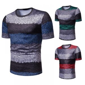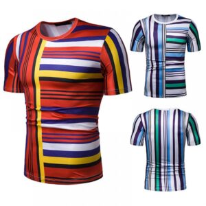 New Summer Men’s Short-Sleeved T-Shirt Mens Contrast Striped Slim Casual T-Shirt