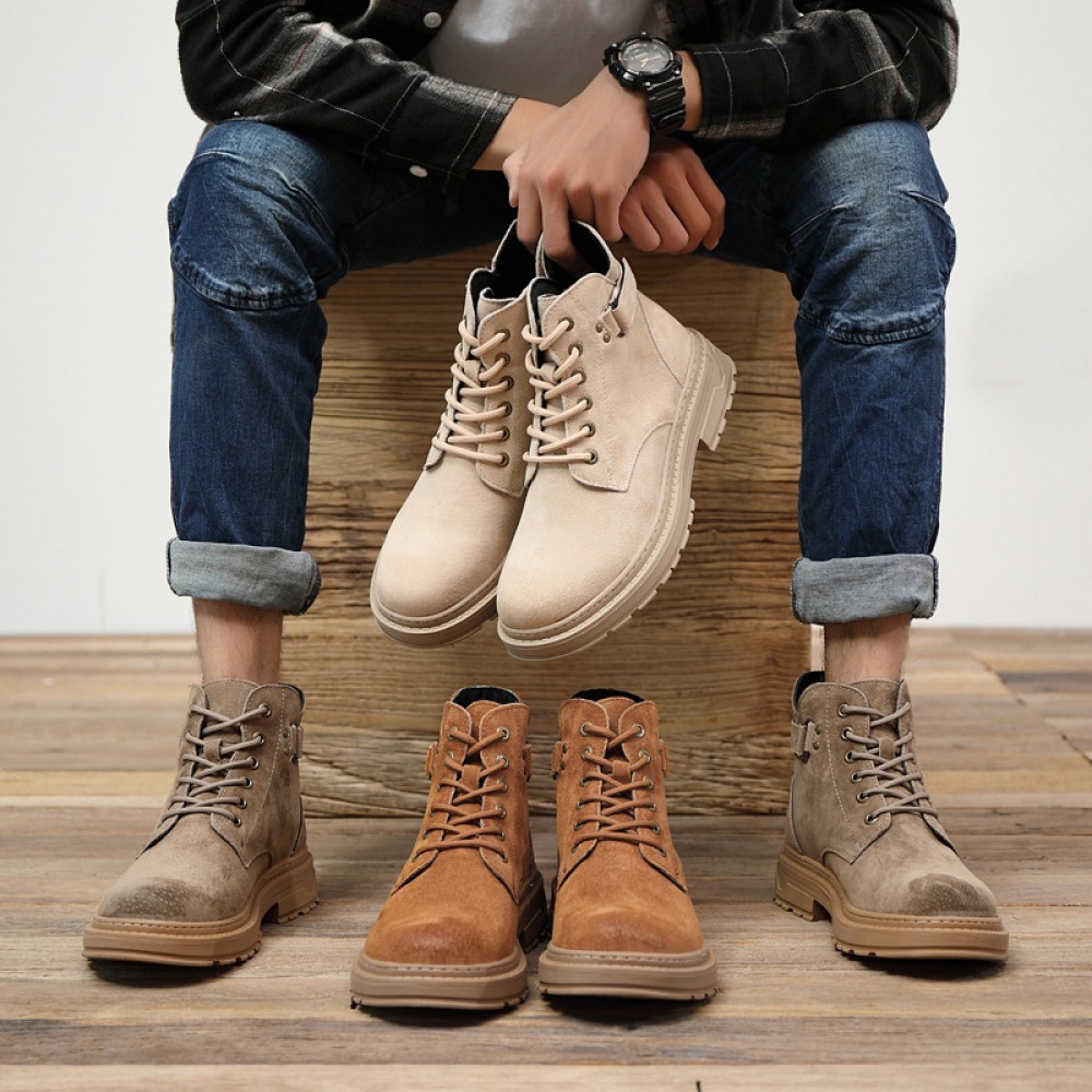 Martin Boots Men’s New British Short Boots Mid-Cut Boots Trendy Shoes High-Top Military Boots