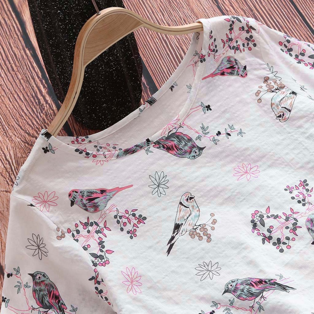 Be the first to review “Retro Cotton and Linen Printed Short-Sleeved Casual Loose T-Shirt Women”